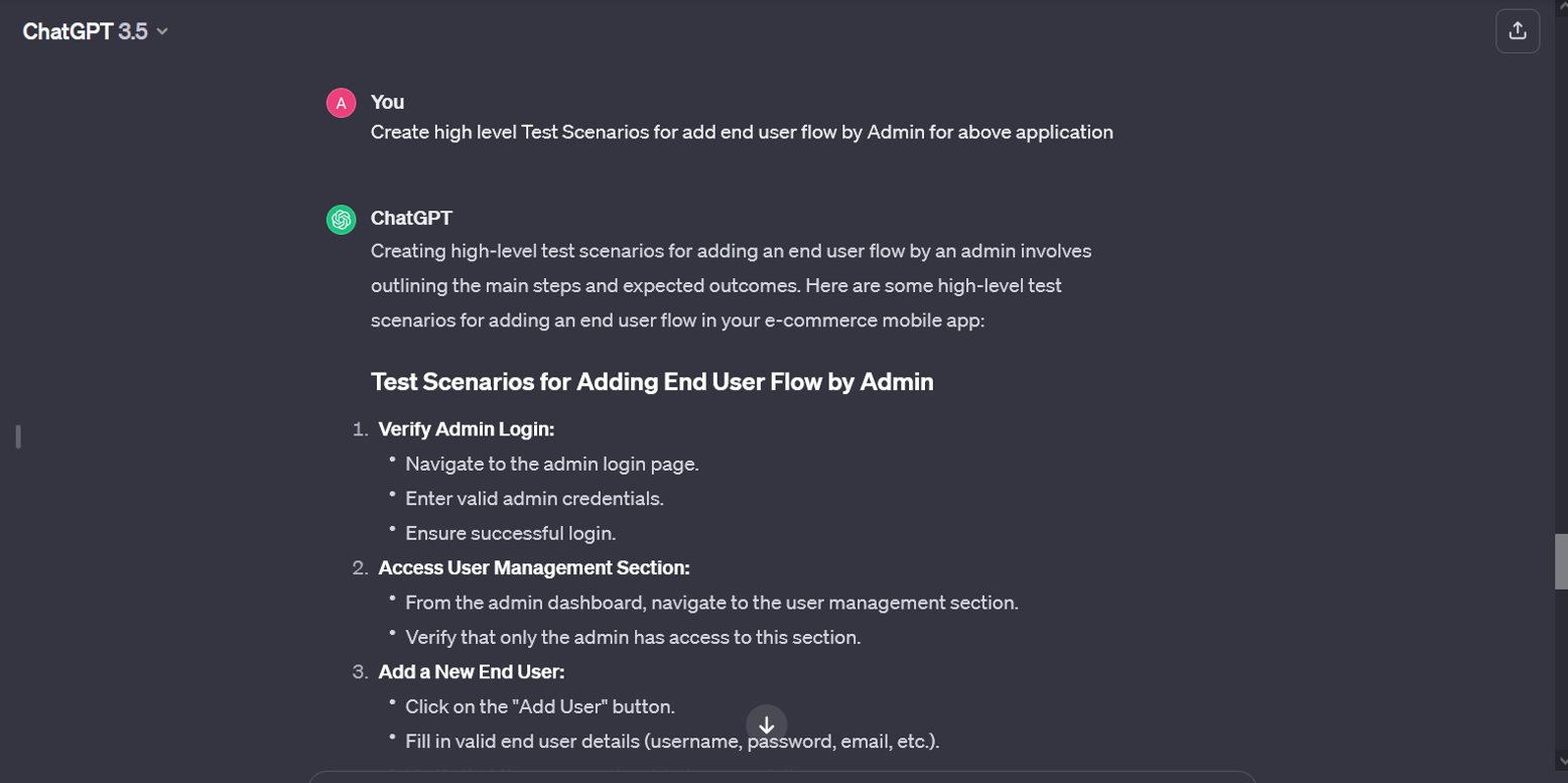 Let’s consider an example using this model where a QA engineer provides a brief description like, “Test user registration flow.” The AI model understands the given requirement and produces test case examples, essentially reducing the manual effort.