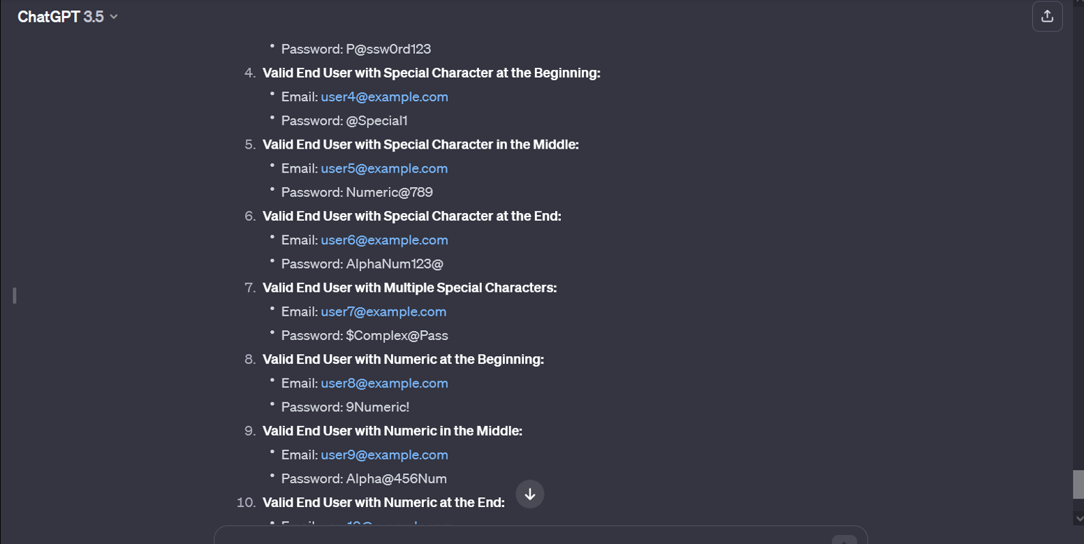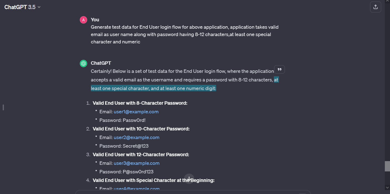 This is based on the AI model’s capability of understanding the description and generating relevant examples subsequently. This can be used to create a wide array of test cases based on given test case examples.