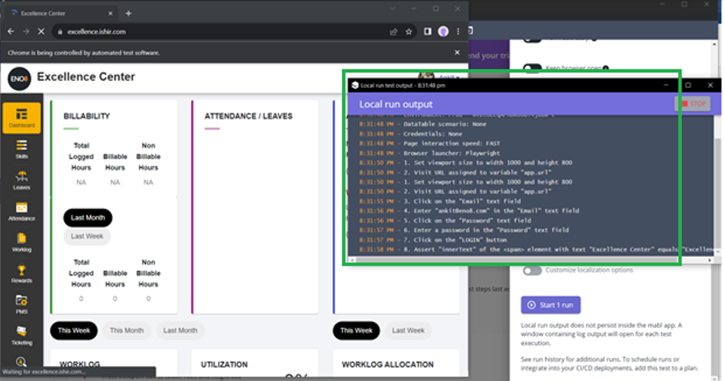 – Assertion is implemented through Mabl trainer for ‘Excellence Centre’ title on landed page.