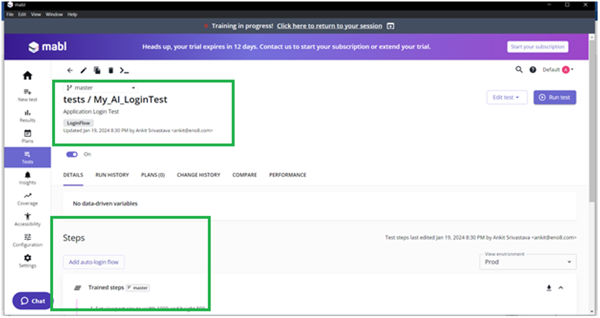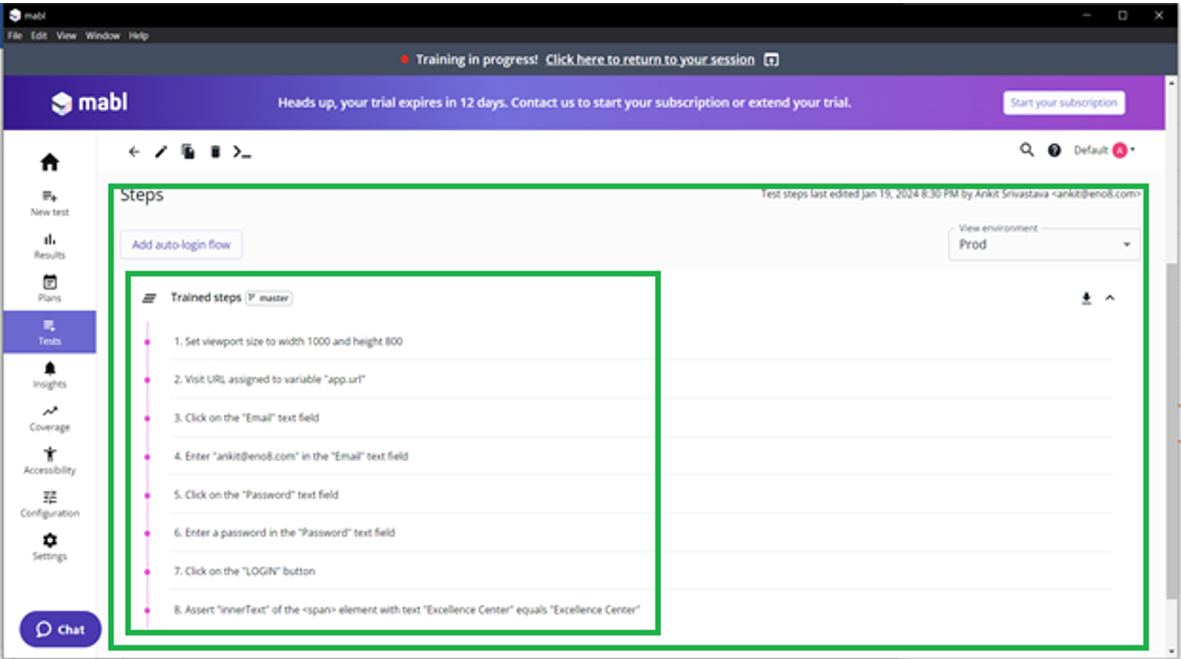 Step 3: Train the Mabl trainer through series of test execution steps