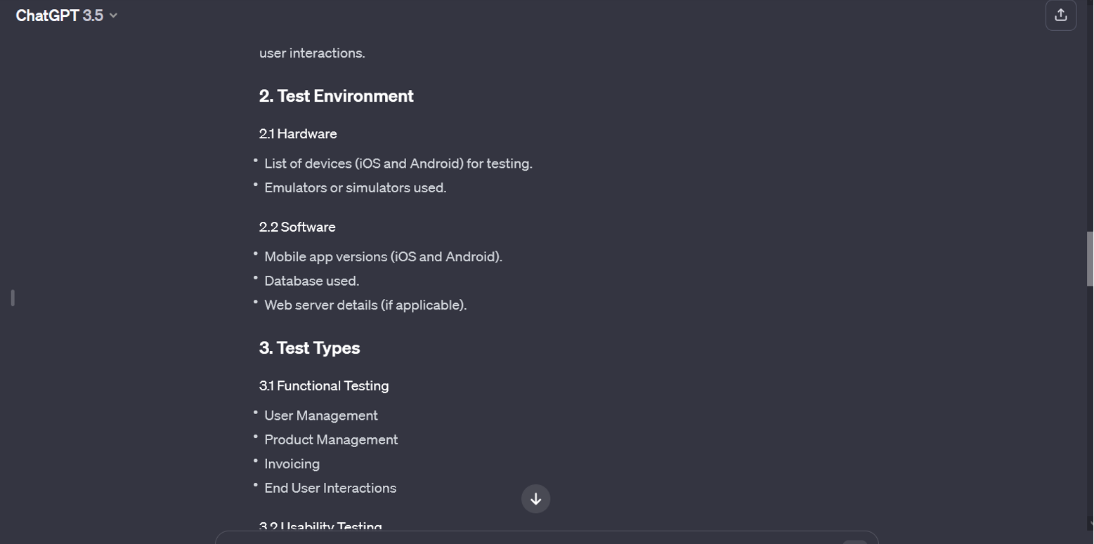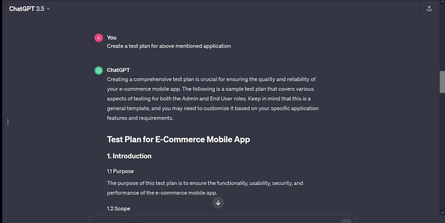 After Asking tool about the test plan for same application, contextual results are popped out which can be used as baseline for Test Plan for the application, addition info can be added as per the requirement.