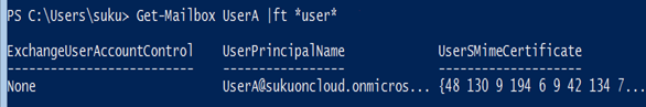 - Run the following command and ensure that the UserSMimeCertificate attribute is populated with the certificate information. If not, return to Step 4.