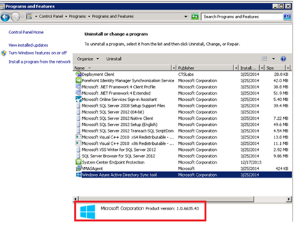 3. DirSync: You need DirSync tool (version 6593.0012 or higher). This helps in synchronizing Active Directory user object to the Azure AD such that cloud users can also see the certificate information of recipients while performing S/MIME operation. To verify DirSync version, follow the enlisted steps –