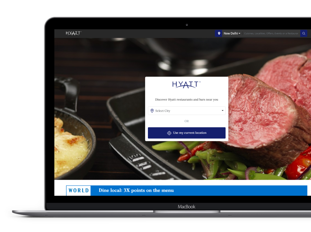 The portal helps people to know more about the restaurants, their features, highlights, and service. The home page of the Hyatt Restaurants web portal is where you can select the desired city. After selecting the city you can see all the listed restaurants at one place. You will have to enable your device location to view all Hyatt restaurants in the nearby 50 km radius.